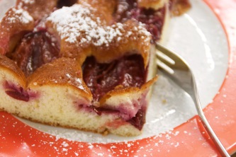 | Pflaumenkuchen mit Vanilleeis und Sahne | |